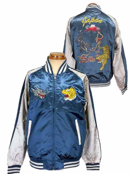 メンズ/紳士★刺しゅう入りスカジャン/和柄刺繍/サテン地スカジャン/裏張りジャンバー/虎&龍刺繍/寅&竜