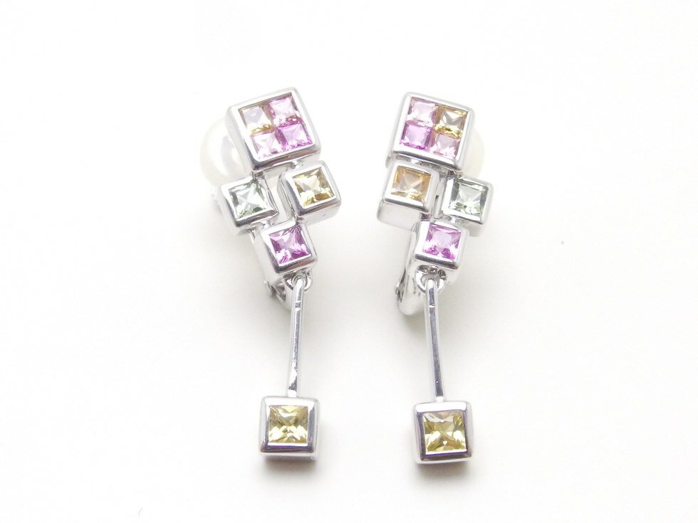 K18WG/K14WG マルチカラーサファイア2.07ct デザイン イヤリング【新宿店】【中古】【新着】