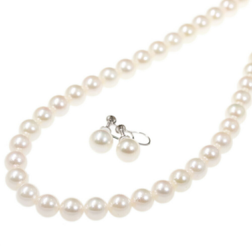 真珠(パール)・ネックレス・イヤリングセット・ジュエリー/Sv925×K14/585コンビ-29.7/1.8g/シルバー×ホワイトゴールド【♀】【N】【レディース】【h190720】【RF2】■295963【中古】
